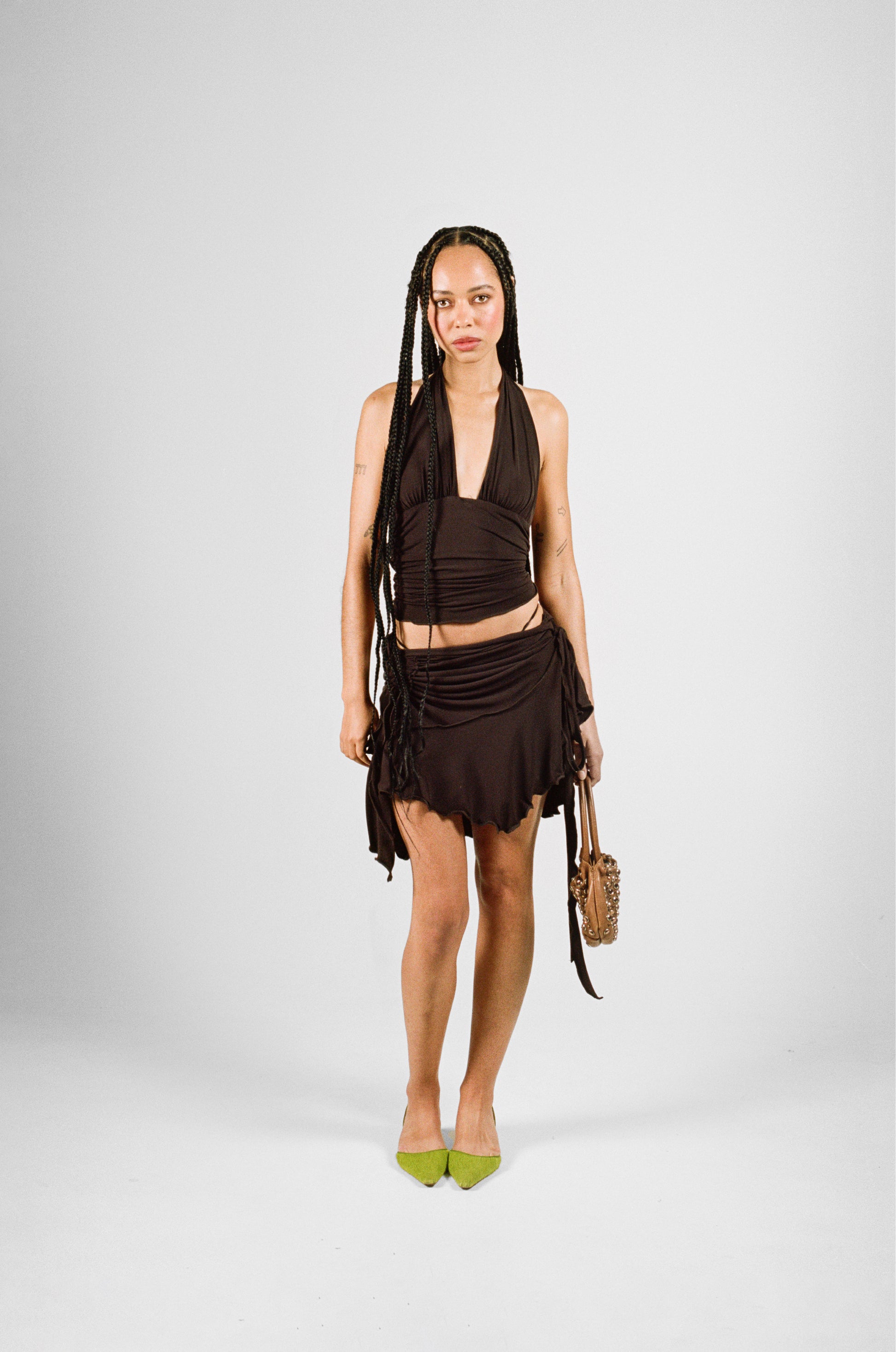The flattering Split Skirt, high slit with gathered detail that allows to to adjust the hemline to suit your mood.