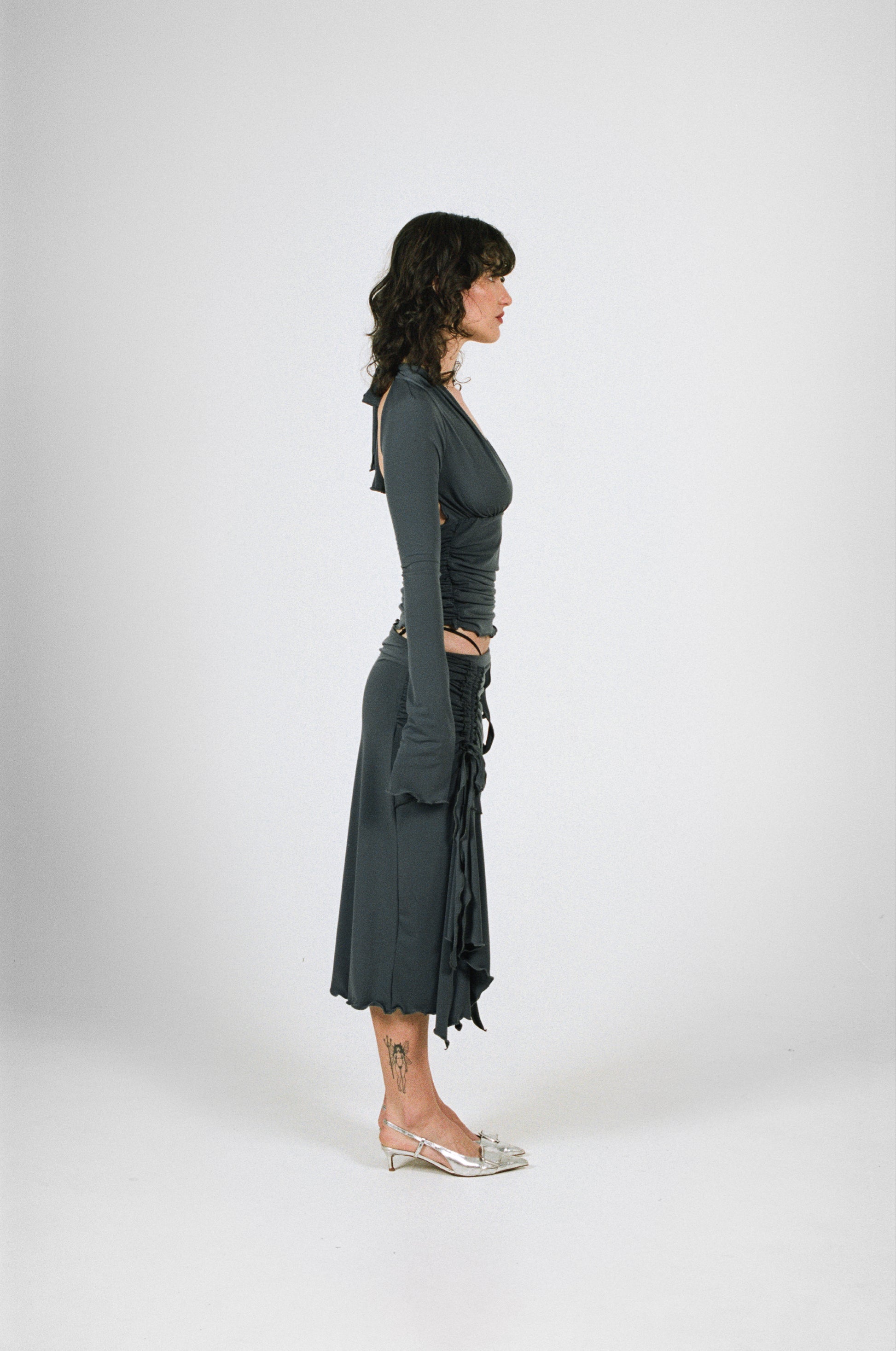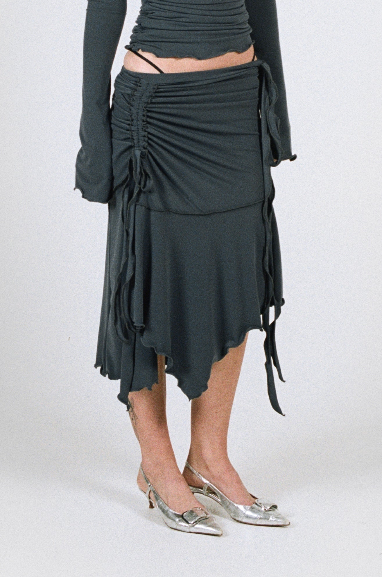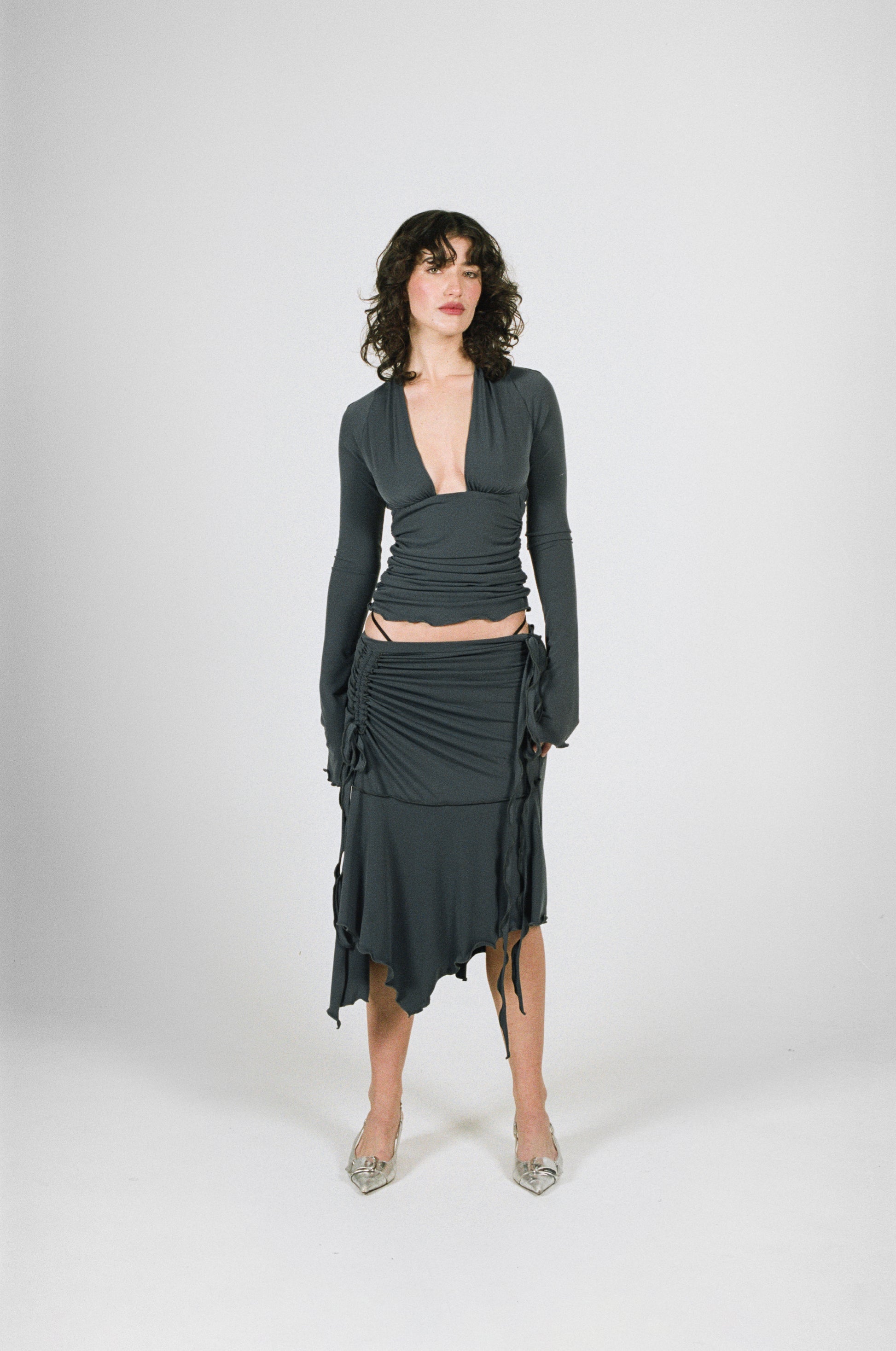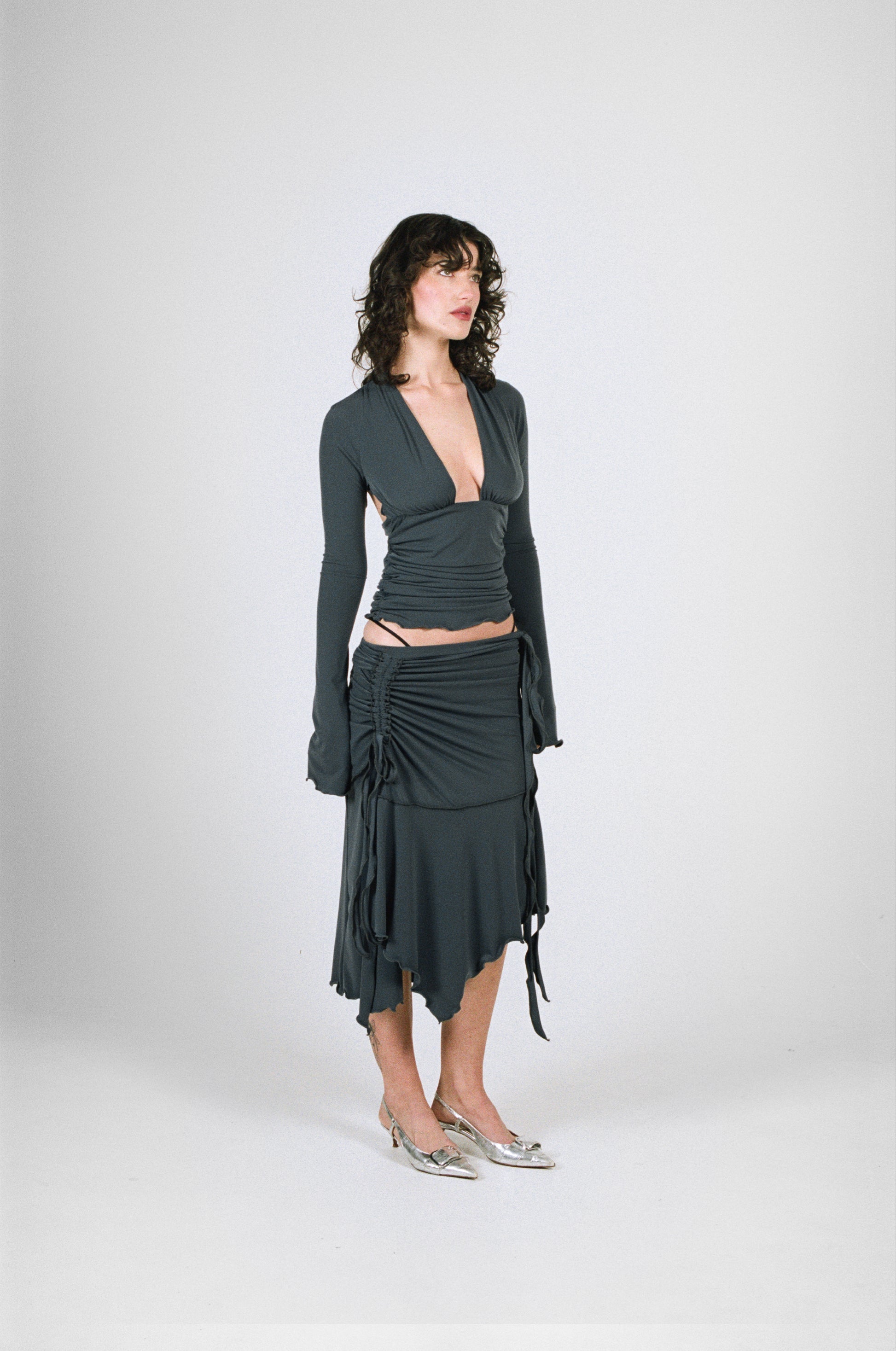 The flattering Split Skirt, high slit with gathered detail that allows to to adjust the hemline to suit your mood.