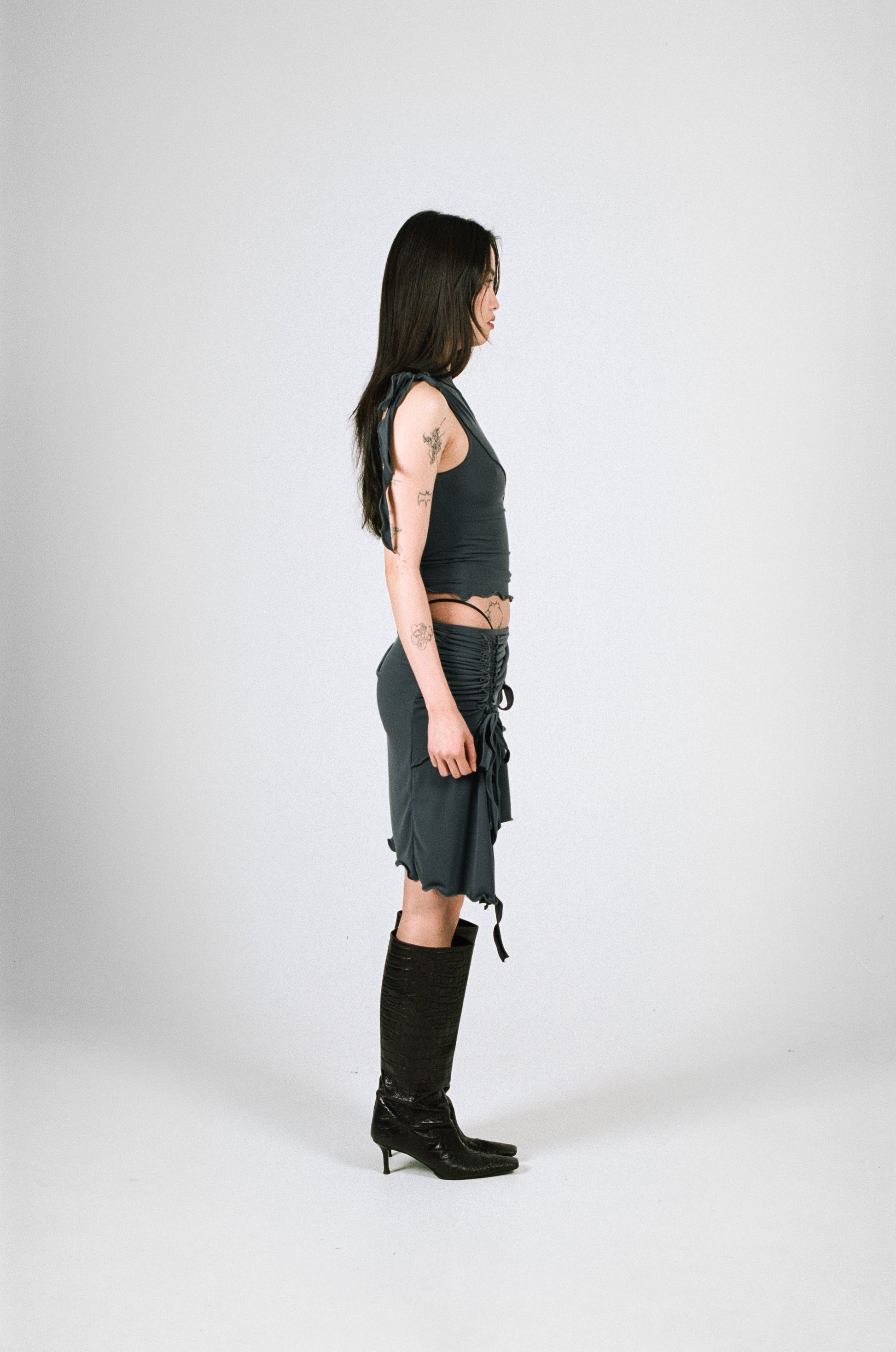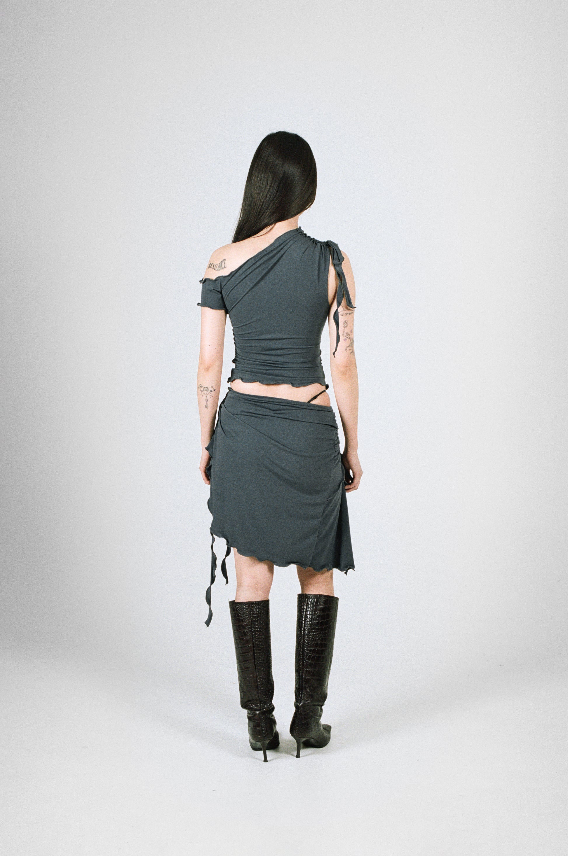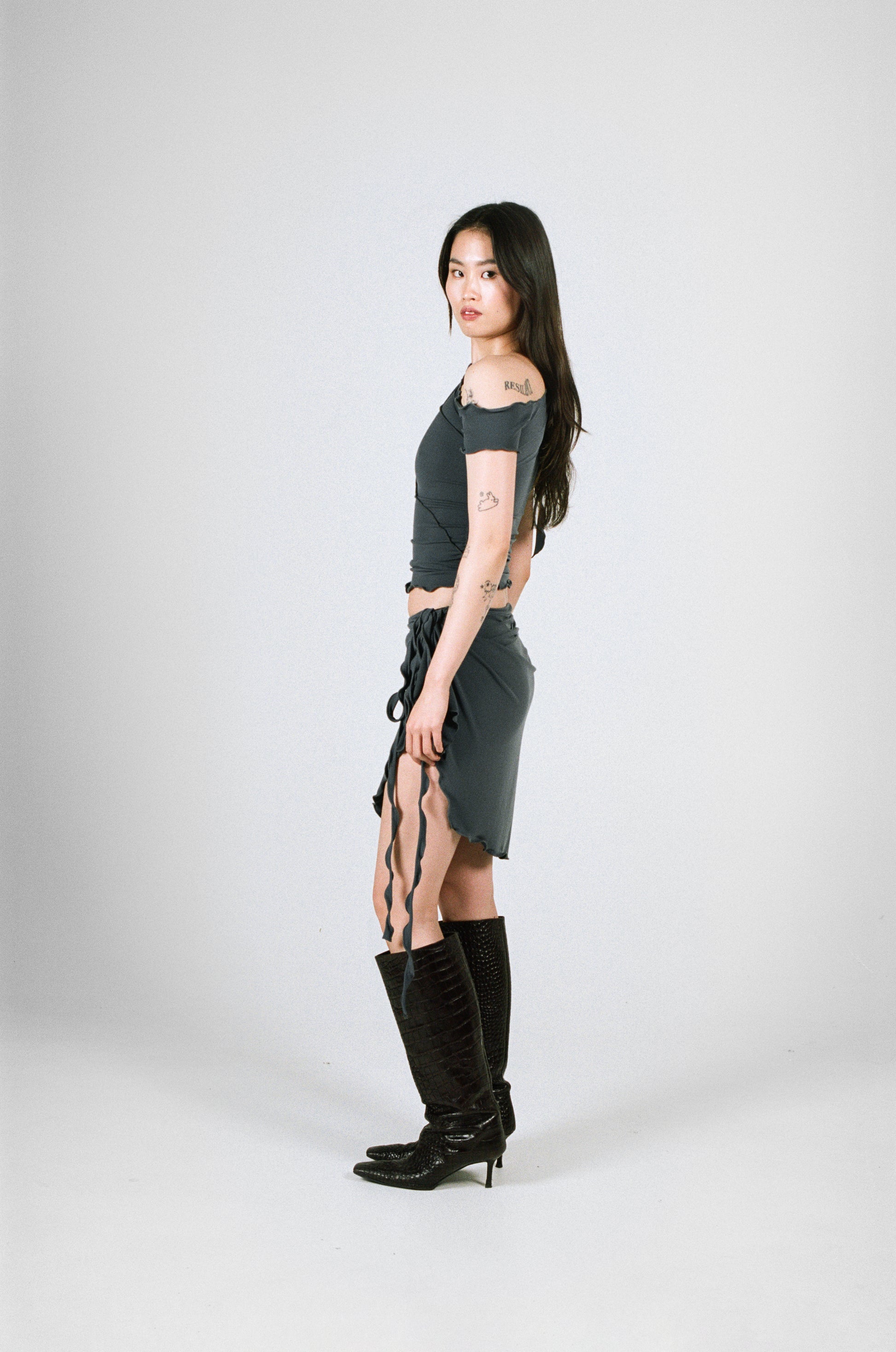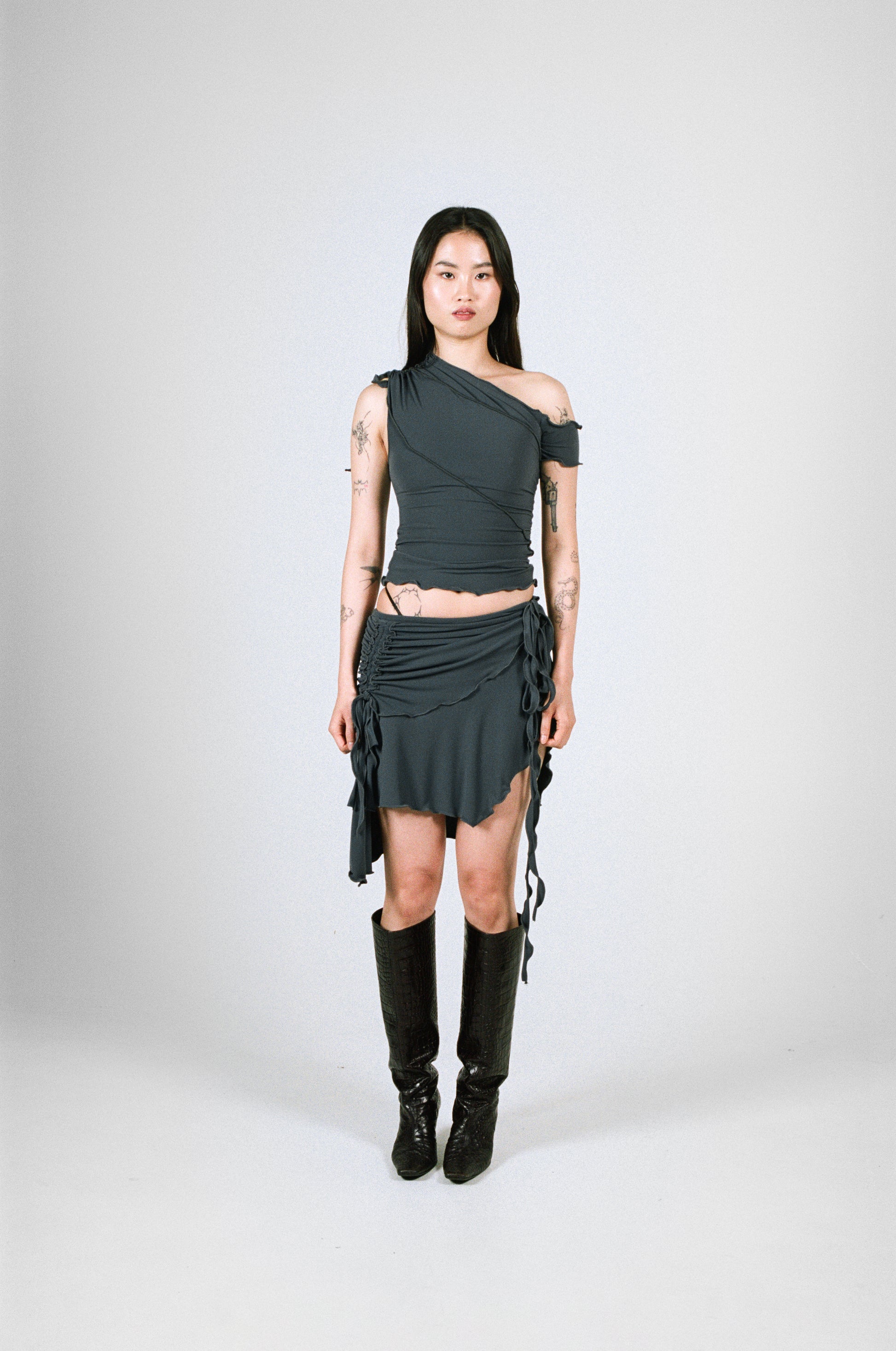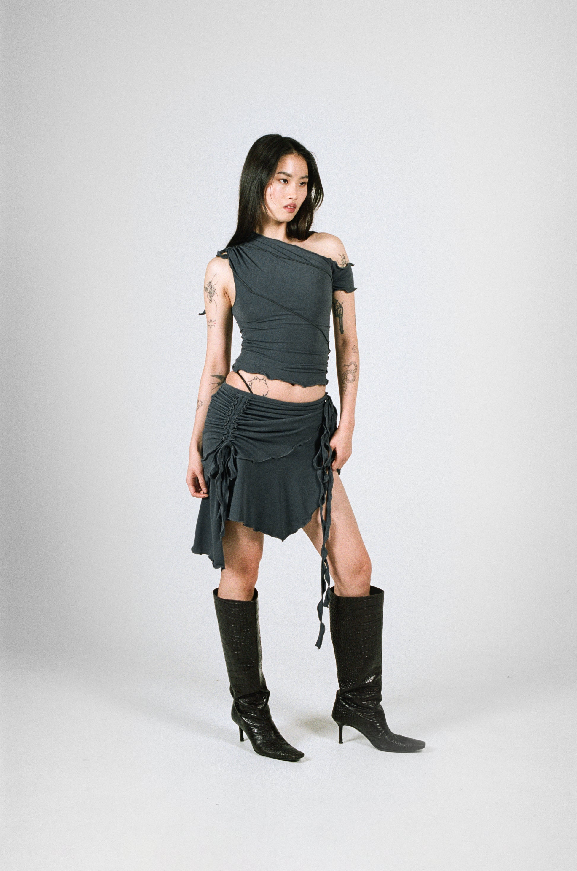 Summer Pop Top made from soft jersey knit fabric that moves with your line. A matt finish, and light feel. Gathers on shoulder with ties to create different looks. Finished with two seaming design lines.