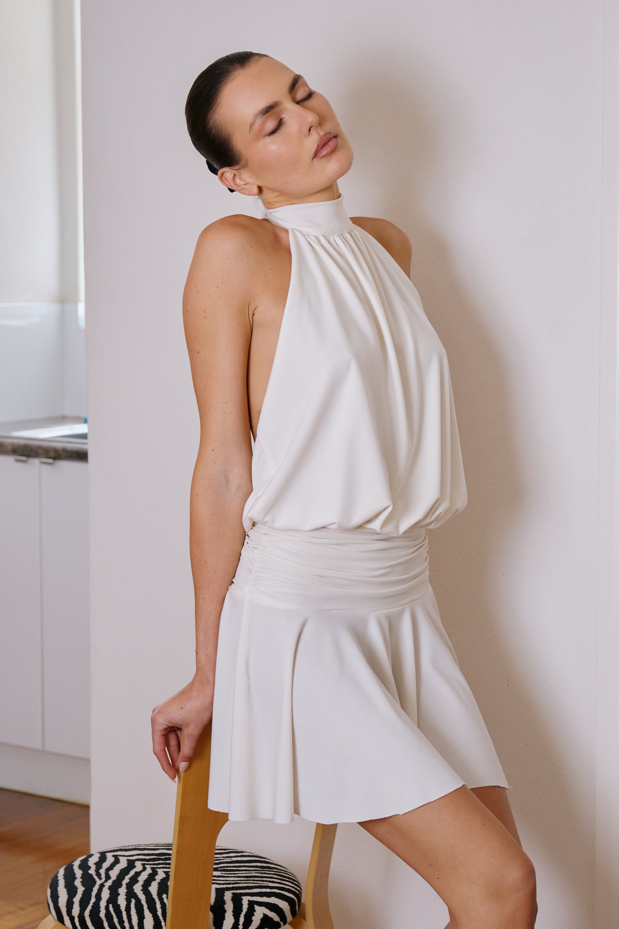 IVORY HALTER MINI DRESS